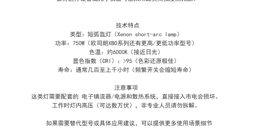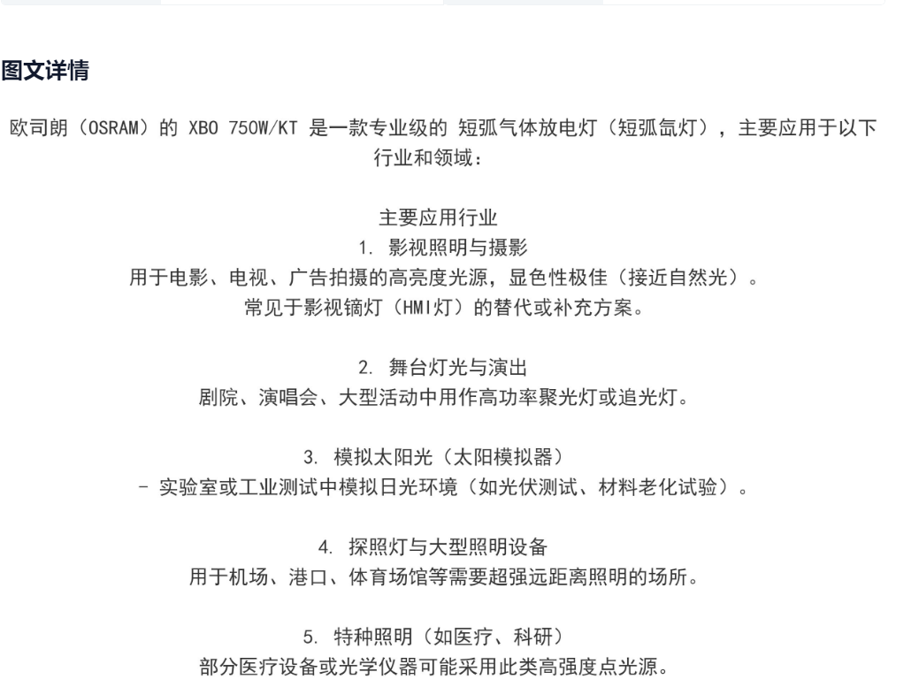 OSRAM/欧司朗XBO 750W/KT 短弧气体放电灯大功率 750W氙灯