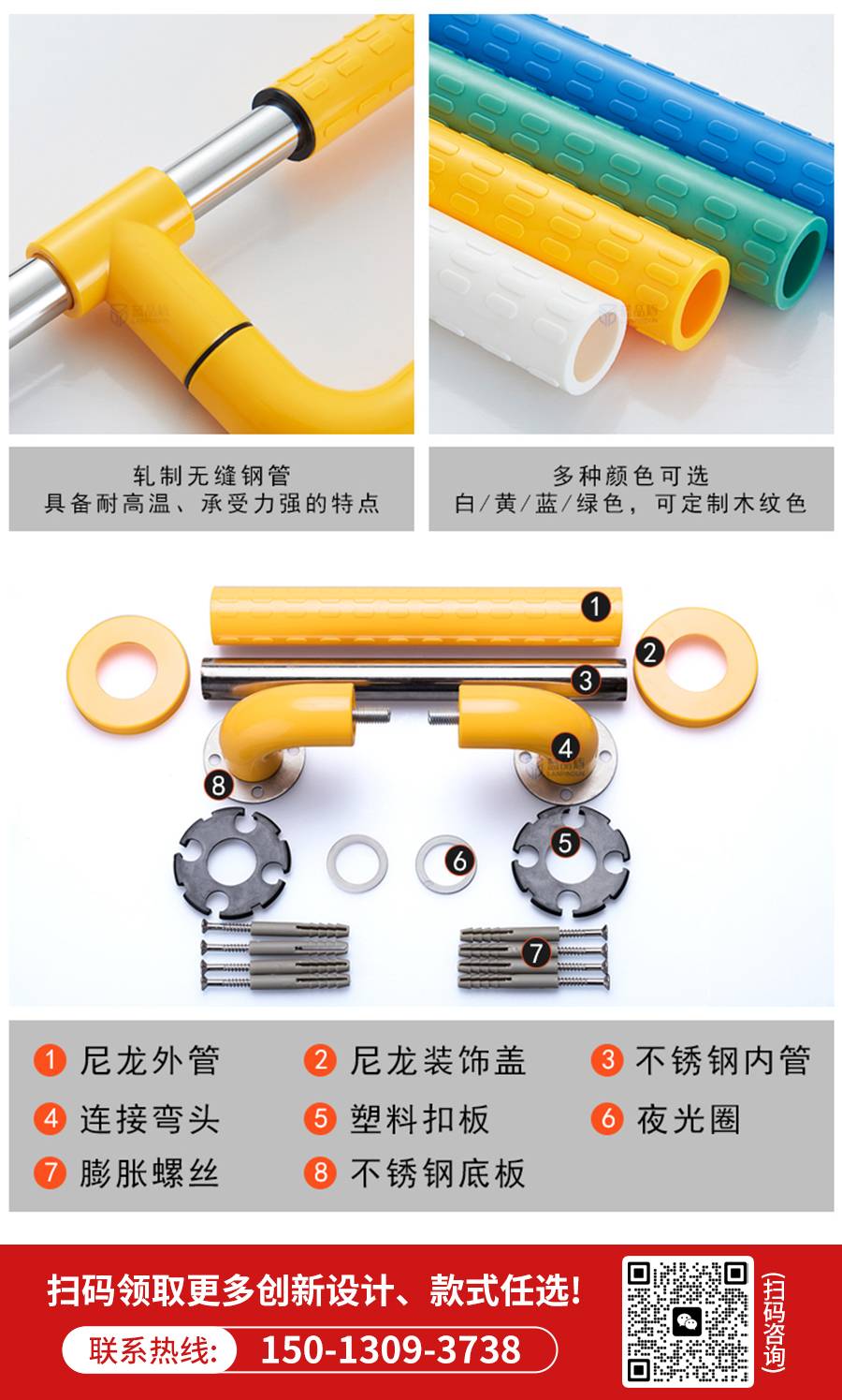 无障碍L型厕所扶手 老人残疾人浴室马桶蹲厕尼龙把手 蓝品盾