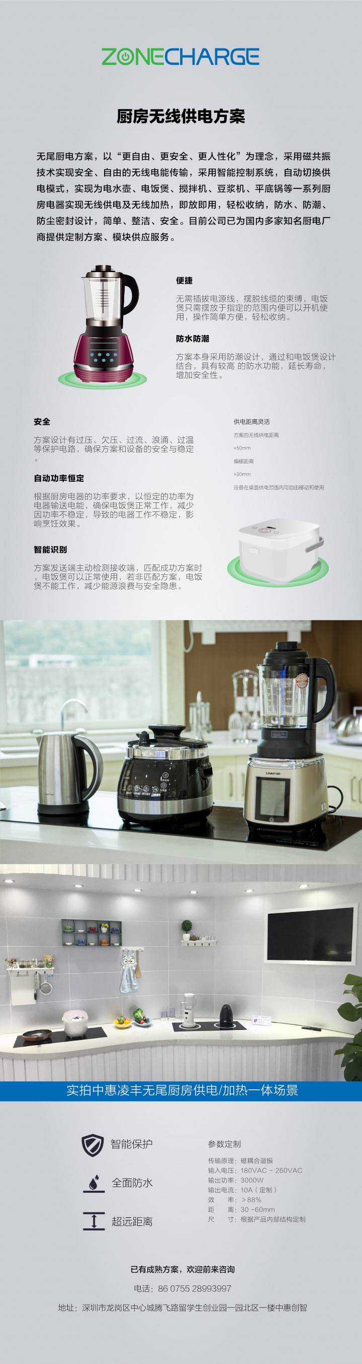 2000w无尾厨房项目方案 源头工厂 厨房电器小家电无线供电