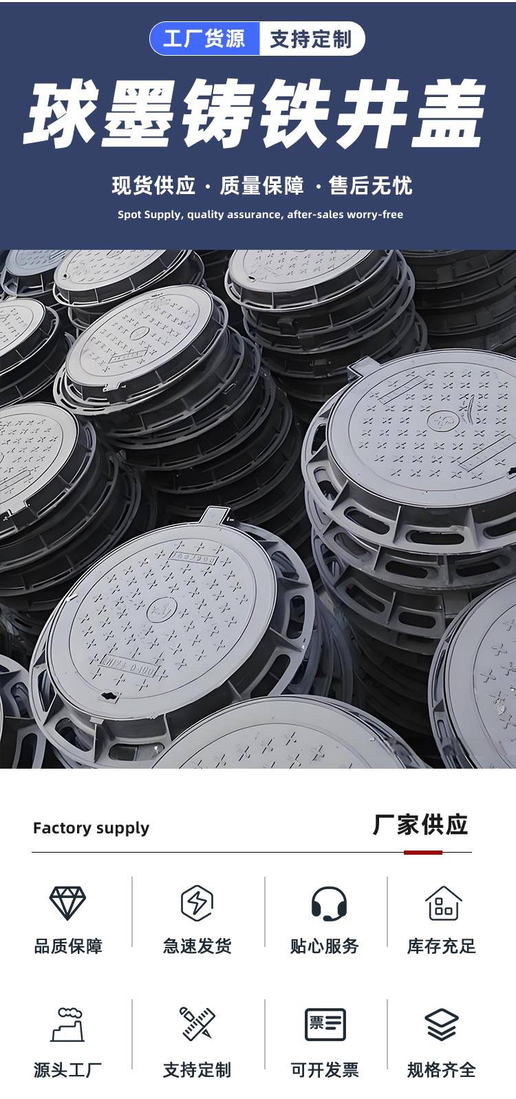 球墨铸铁防沉降井盖市政下水道宽边窨井盖板排水沟箅子厂家批发