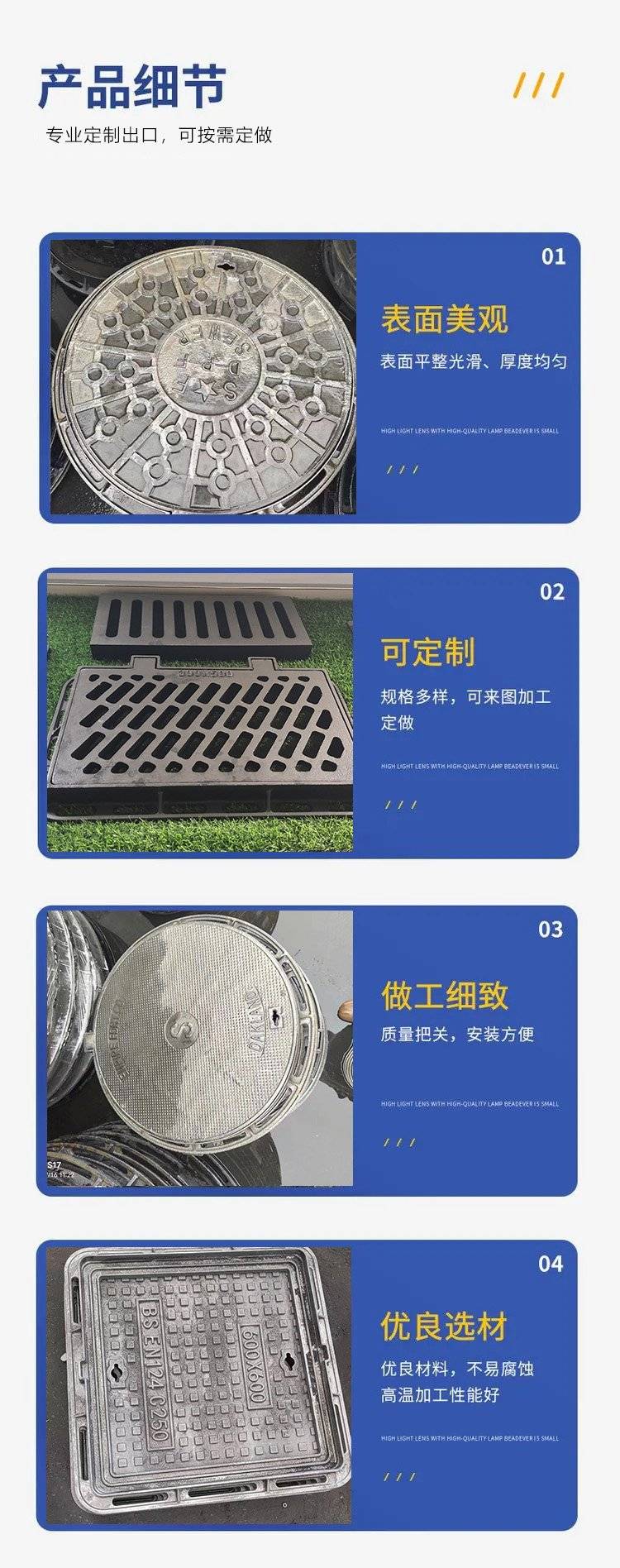 定制D400球墨铸铁井盖 外贸出口专用 铸铁篦子 QT500-7 EN124