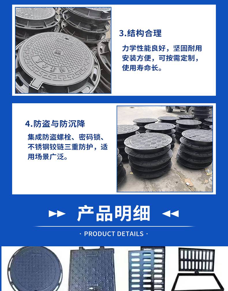 圆形球墨铸铁井盖 源头定制 施工快捷 货源充足 性能稳定