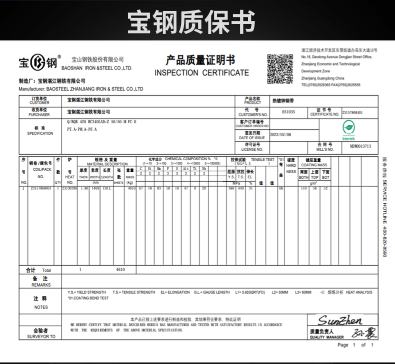 FC300/380LA 抗拉 汽车零部件 2.0*1289*C 具有良好的冲压折弯