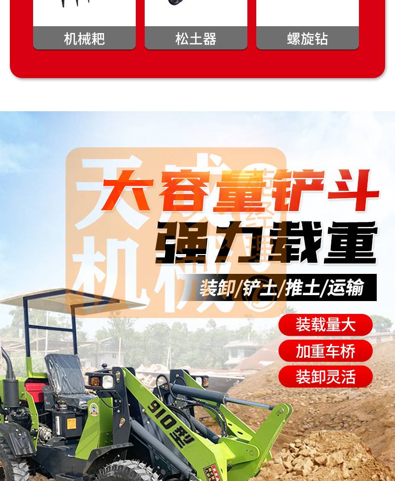 养殖场清粪小铲车 柴油四驱装载机 家用农用推土机 加长臂抓木抓草机