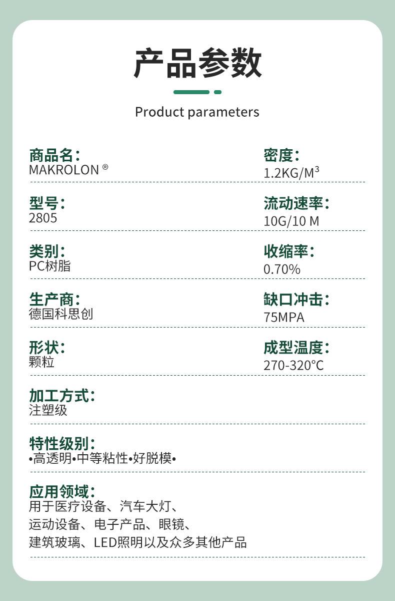 Covestro德国拜耳科思创模克隆透明聚碳酸酯PC塑料2805汽车用材料