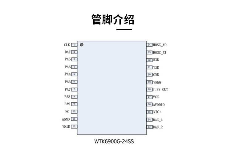 唯创知音 WTK6900H-24SS LED灯声控唤醒语音识别语音IC 中英本地离线