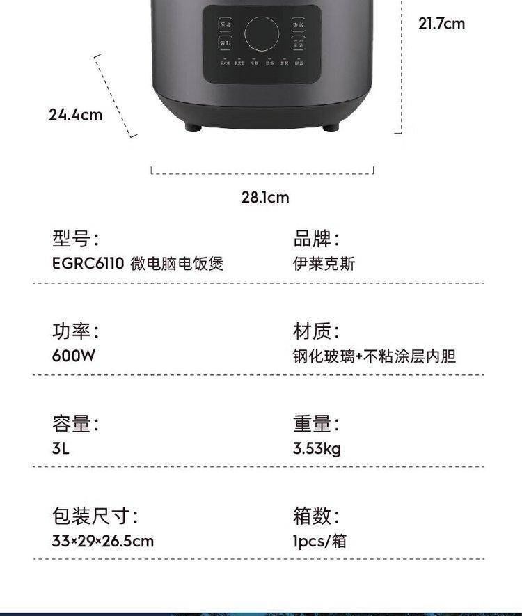 伊莱克斯EGRC6110 微电脑电饭煲 智能电饭锅 多功能蒸米饭煲 触摸操控