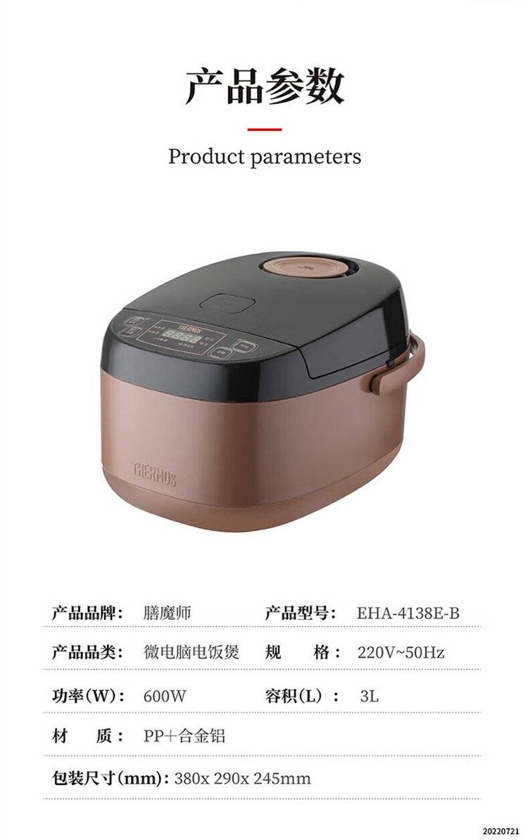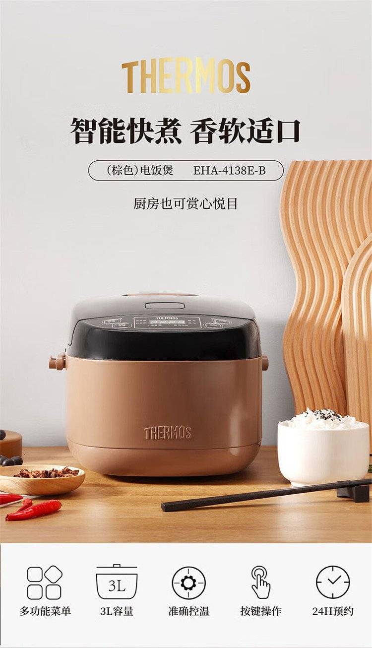 膳魔师3升电饭煲 EHA-4138E-B 智能快速电饭锅