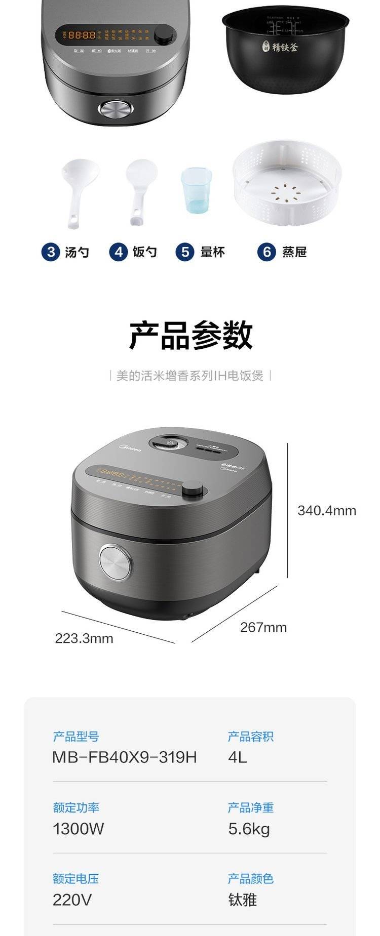 IH电饭煲家用4L升大容量小型多功能智能电饭锅4人煮饭锅5
