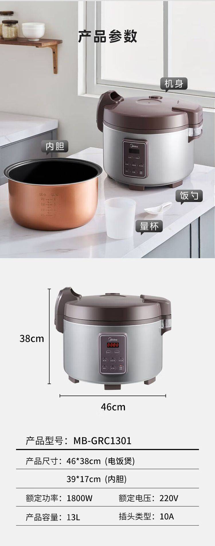 美的 商用电饭煲 GRC1501 家用大容量电饭锅煮饭保温多功能电微压锅