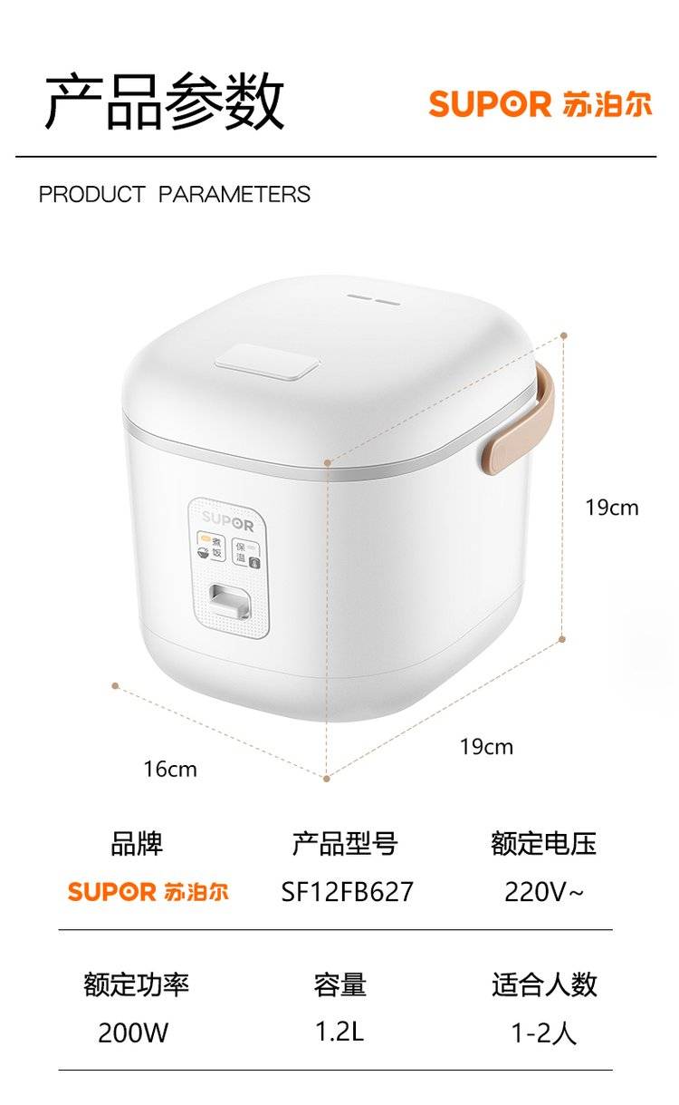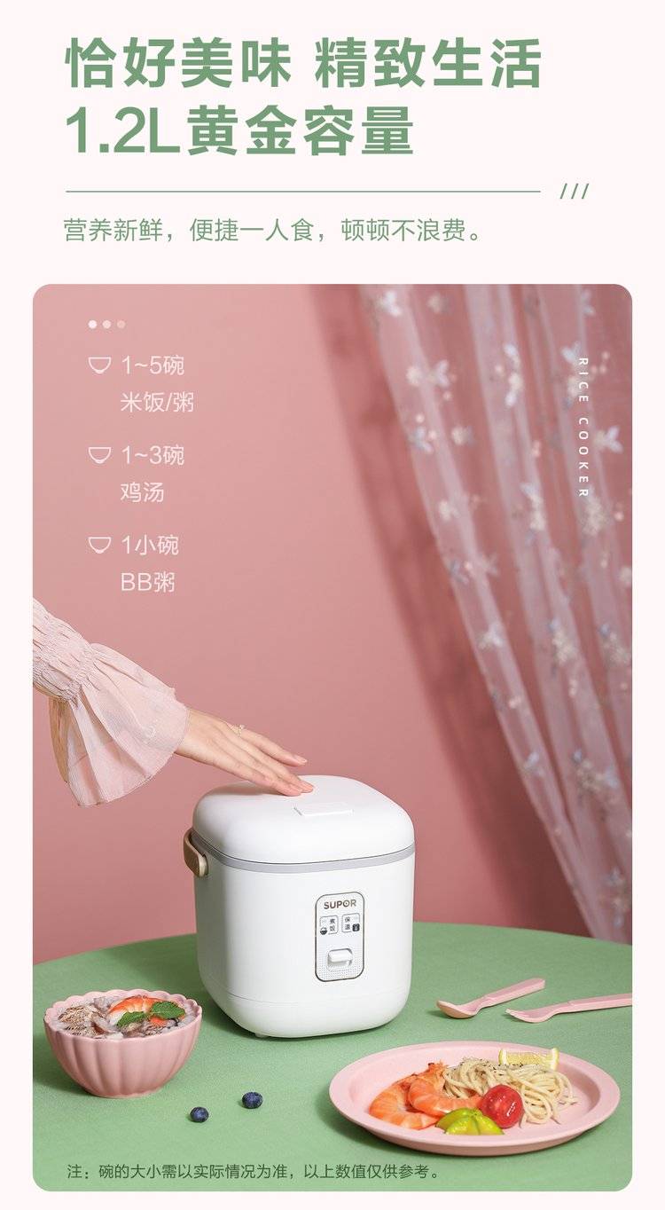 苏泊尔电饭煲家用迷你智能1.2L宿舍小型电饭锅小2人保温煮饭锅