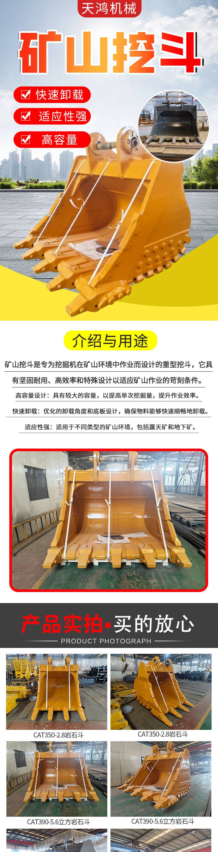 卡特1.87立方矿山岩石加强斗 品牌斗齿 高温耐磨 天鸿机械支持定制