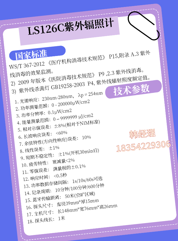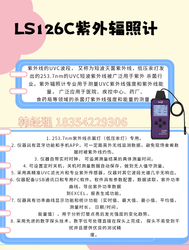 新业LS126C紫外辐照 计低压汞灯 光谱响应230nm-280nm