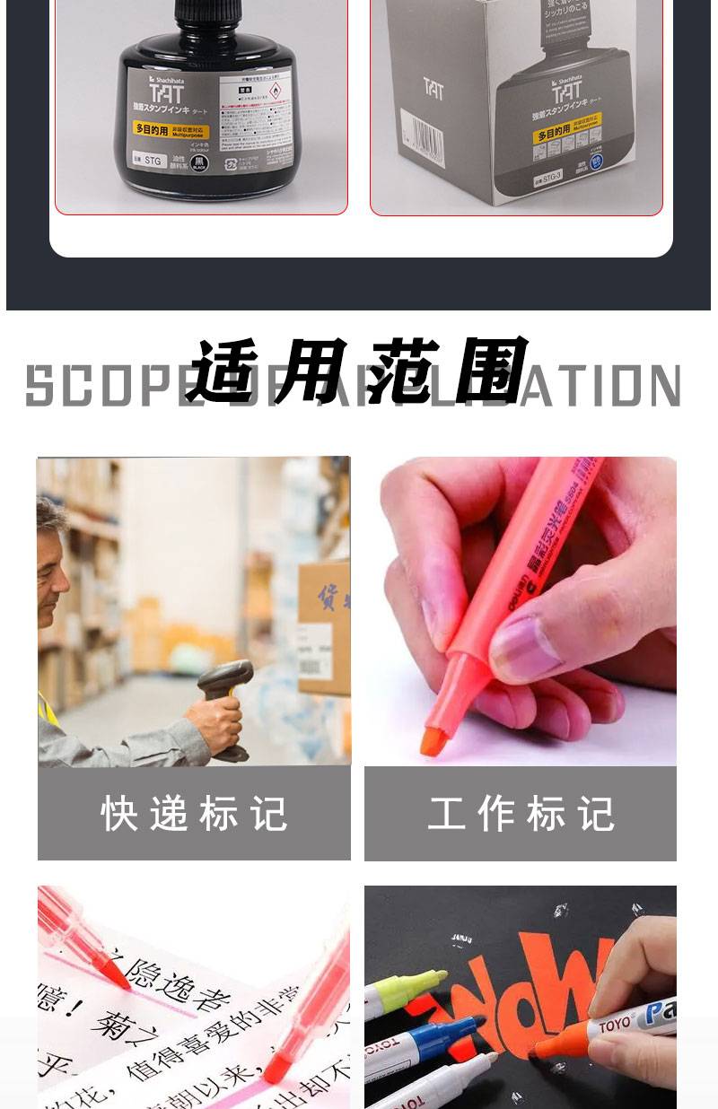 在纸、木头、布料、塑料瓶、亚克力板、金属或塑料袋等表面使用