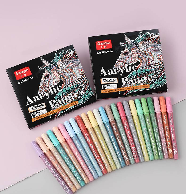 广纳S2000莫兰迪色丙烯笔绘画马克笔DIY学生美术手绘动漫设计彩绘学生画册涂鸦笔丙烯颜料套装3.048色套装
