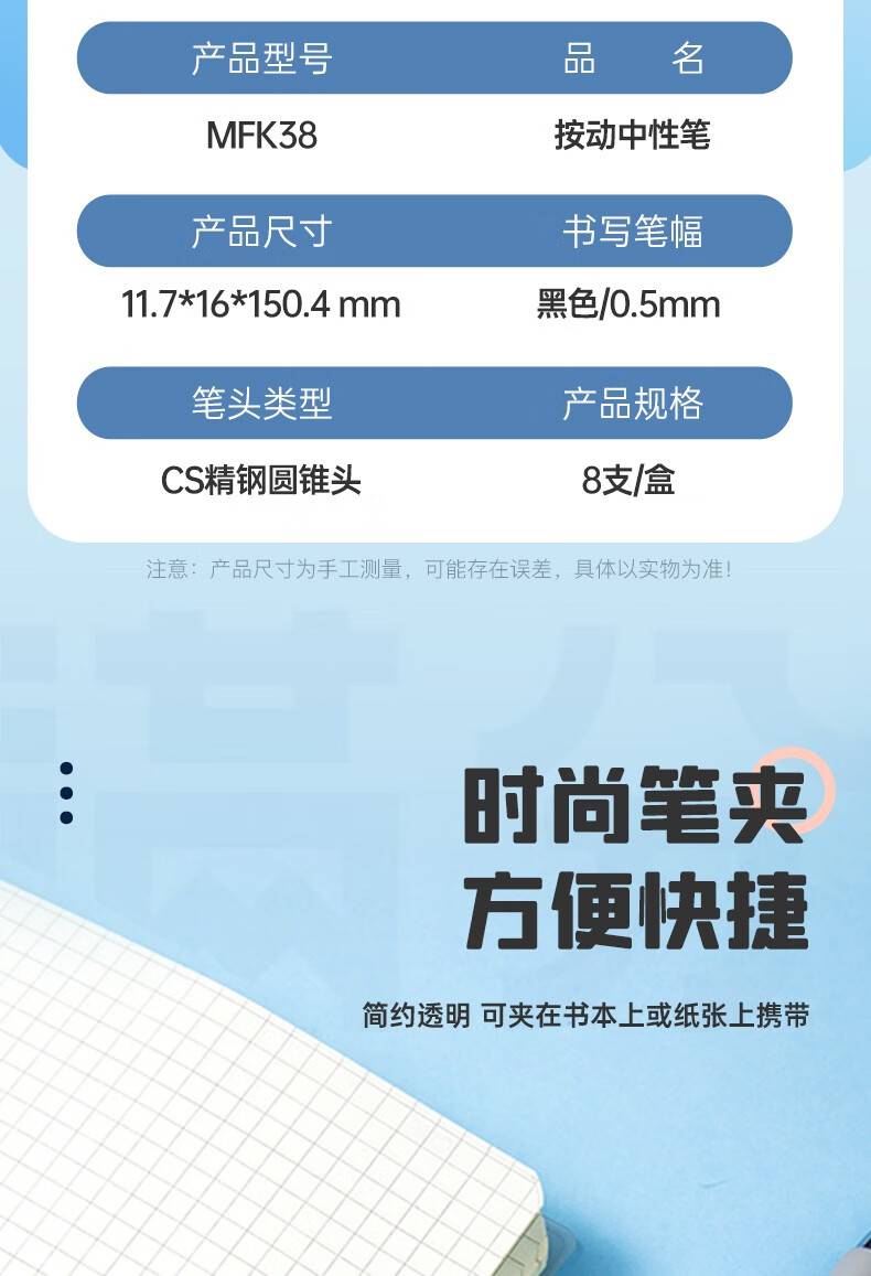 齐心刷题笔专用按动中性笔笔头中0.5黑色(CS笔尖)16支