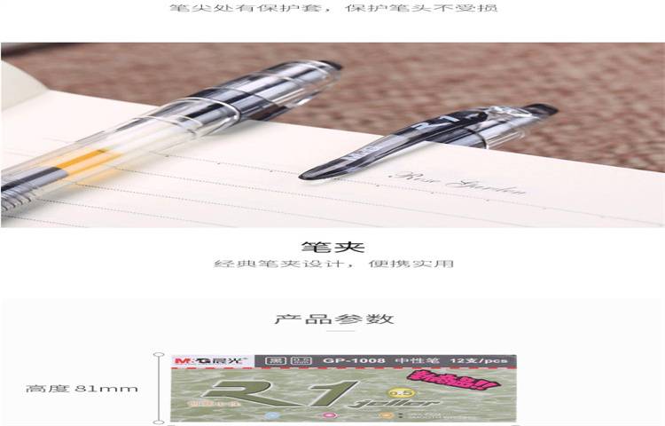 晨光(M&G)文具GP1008/0.5mm黑色中性笔 经典按动子弹头签字笔