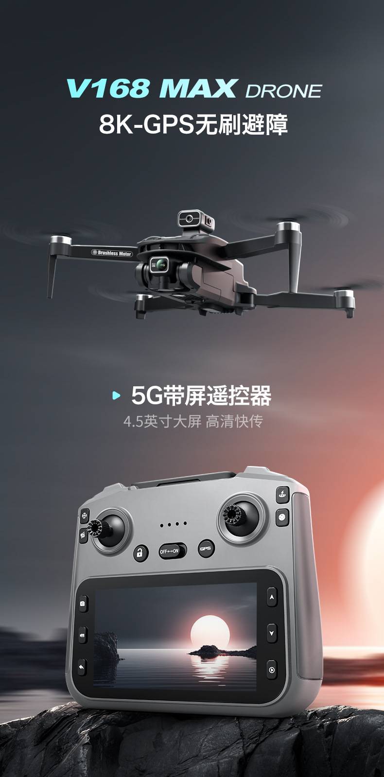 跨境V168MAX无人机GPS返航带屏航拍飞行器折叠遥控飞机外贸玩具