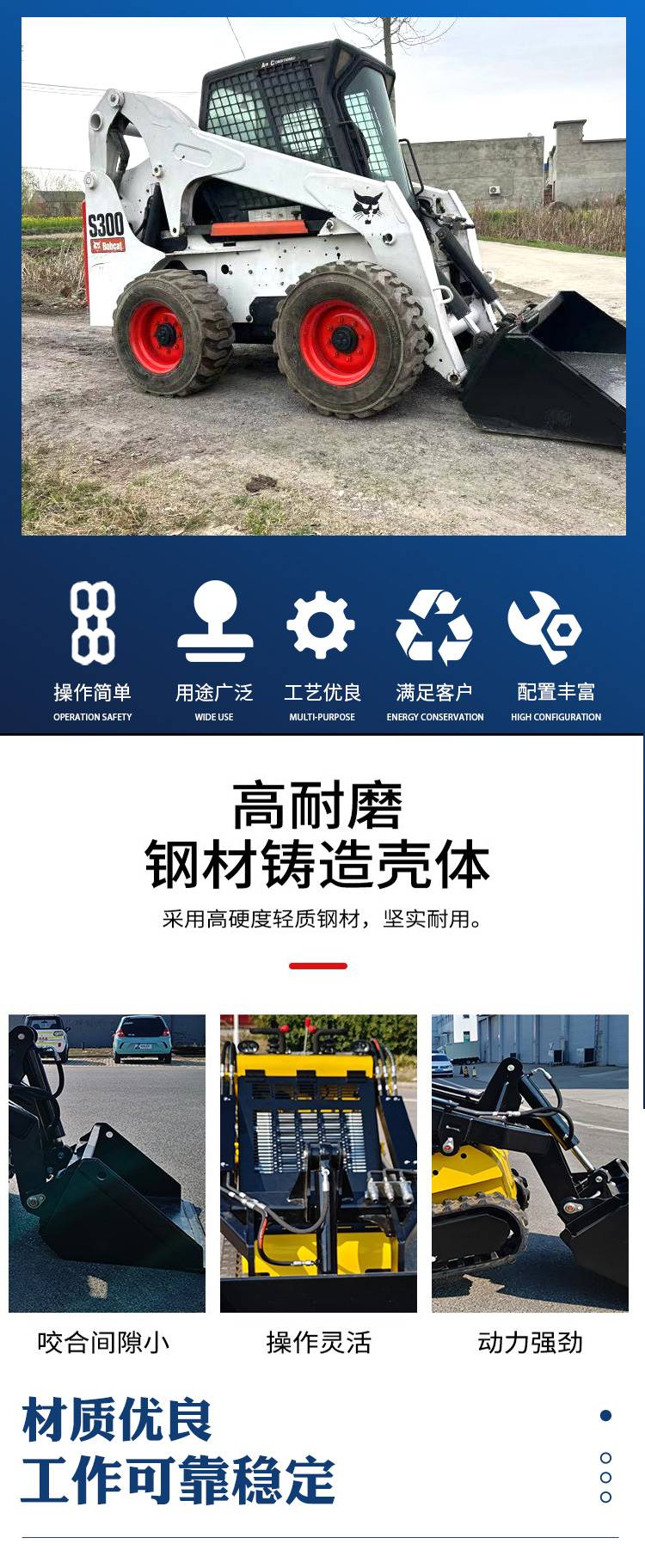 工程垃圾抓草农家农林果跨境出口轮式滑移装载机 多功能滑移机