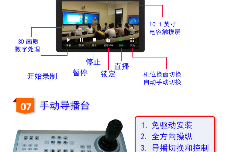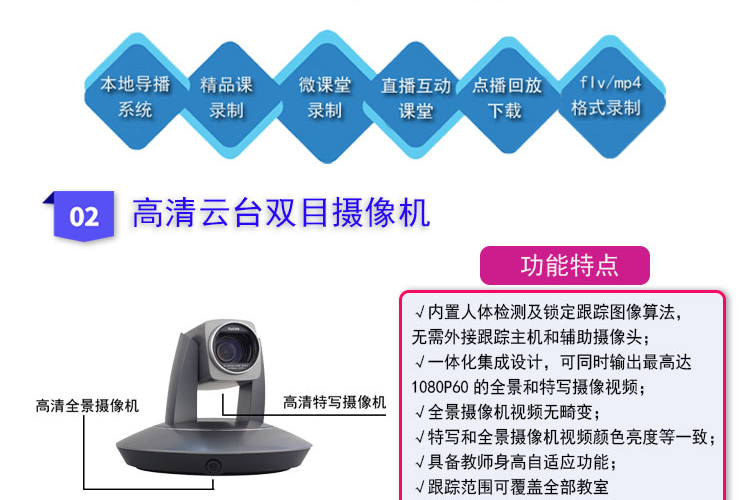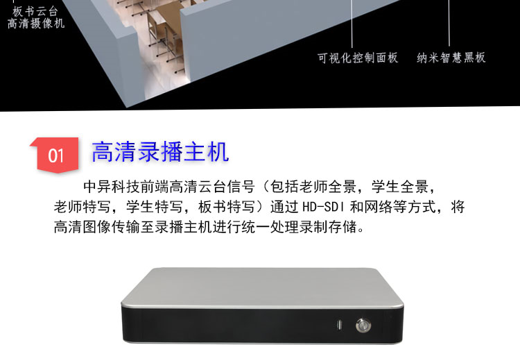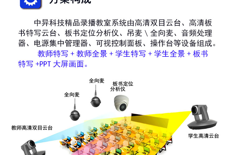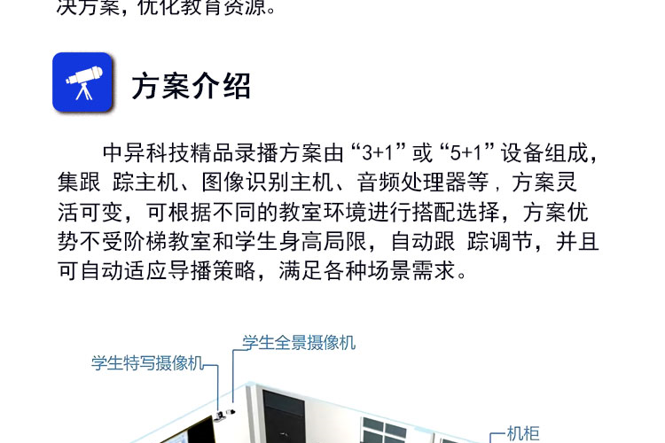 中异科技 全自动录播方案 语音激励跟踪+特写切换 精品课程录制系统