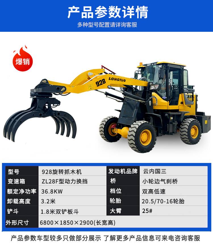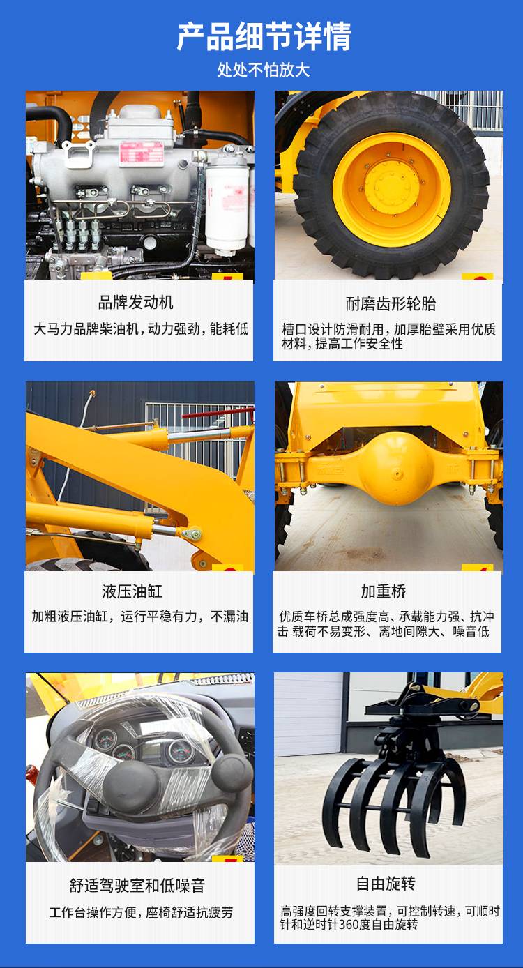 铲车装载机四驱小型多功能柴油抓木抓草机定制