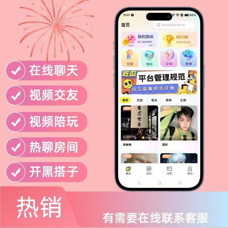 语聊交友语音房app开发定制系统社交商城直播聊天软件源码小程序