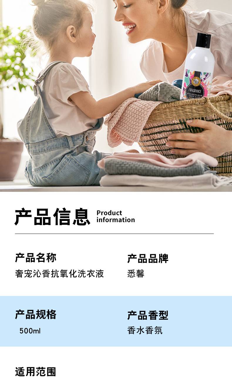 奢宠沁香抗氧化洗衣液 低泡漂洗无残留 来自欧洲调香大师 悉馨