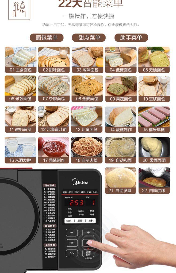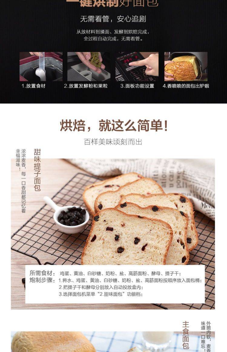 鑫佰面包机家用全自动小型蛋糕和面发酵烤面包一体机早餐机RA180