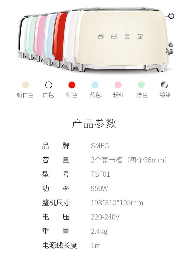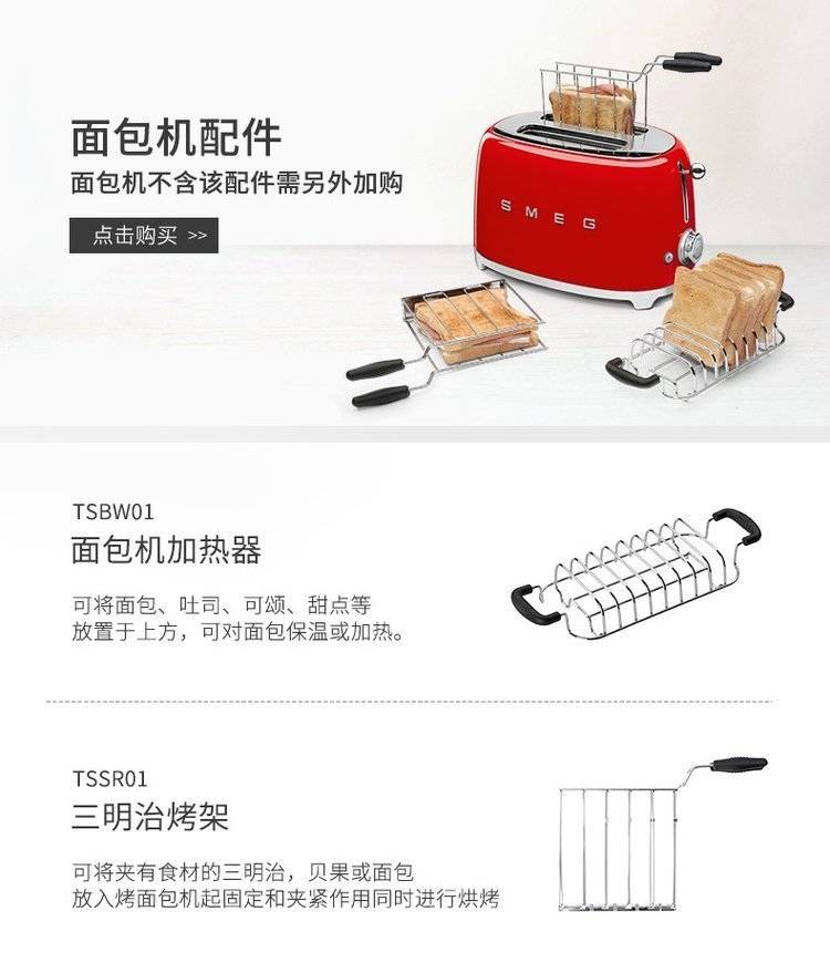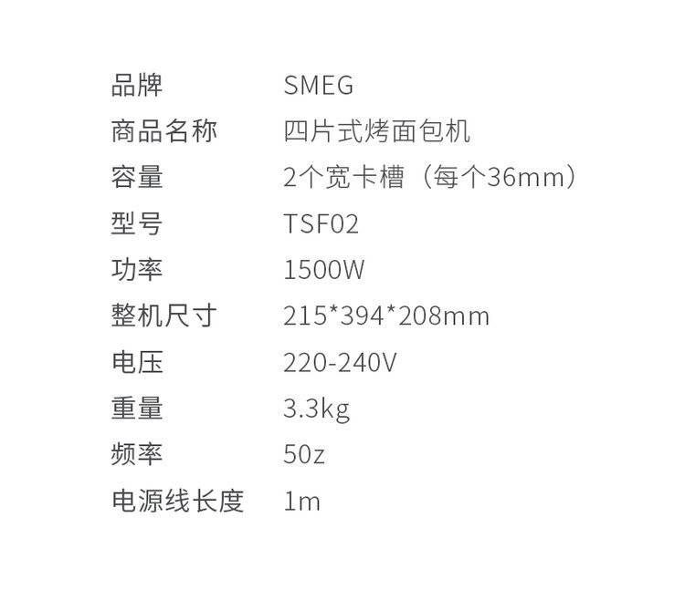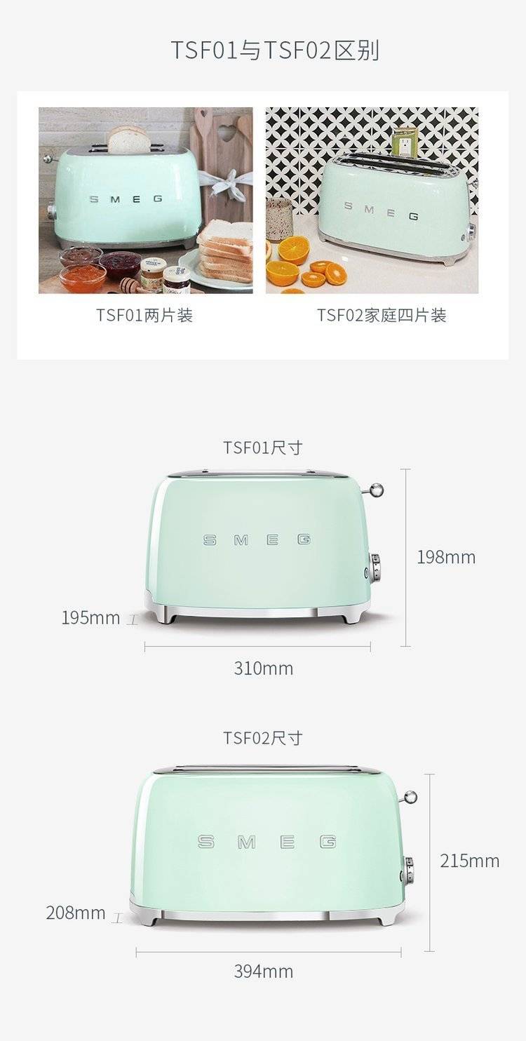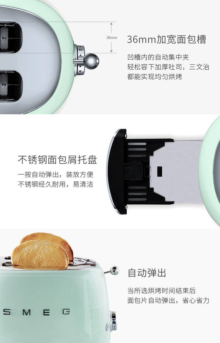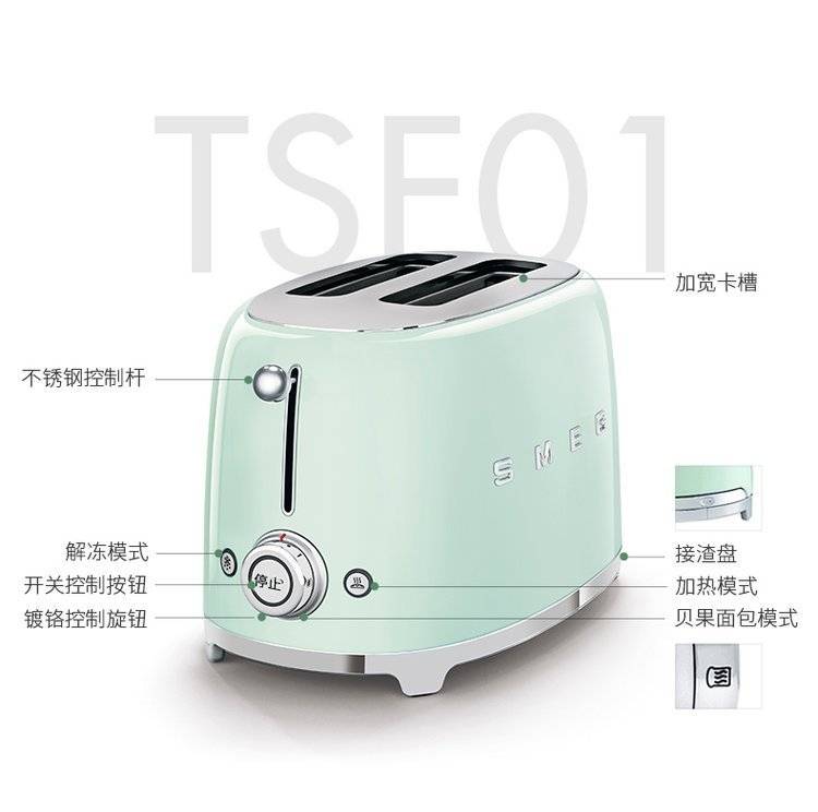 SMEG斯麦格烤面包机TSF01家用加热多士炉吐司机多功能小型早餐机