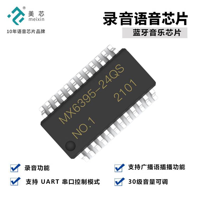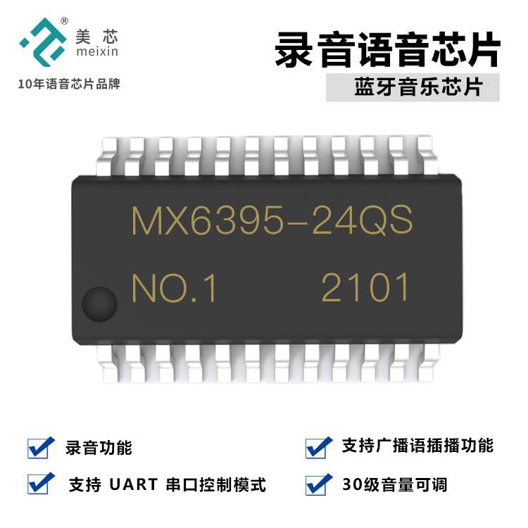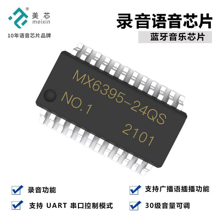 美芯电子 MX6395录音芯片 语音ic 支持蓝牙5.0协议MP3音乐解码ic