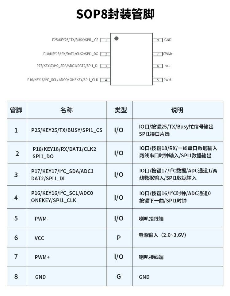 唯创知音 8脚语音芯片 工业级音乐播放ic 多种控制方式 PWM/DAC