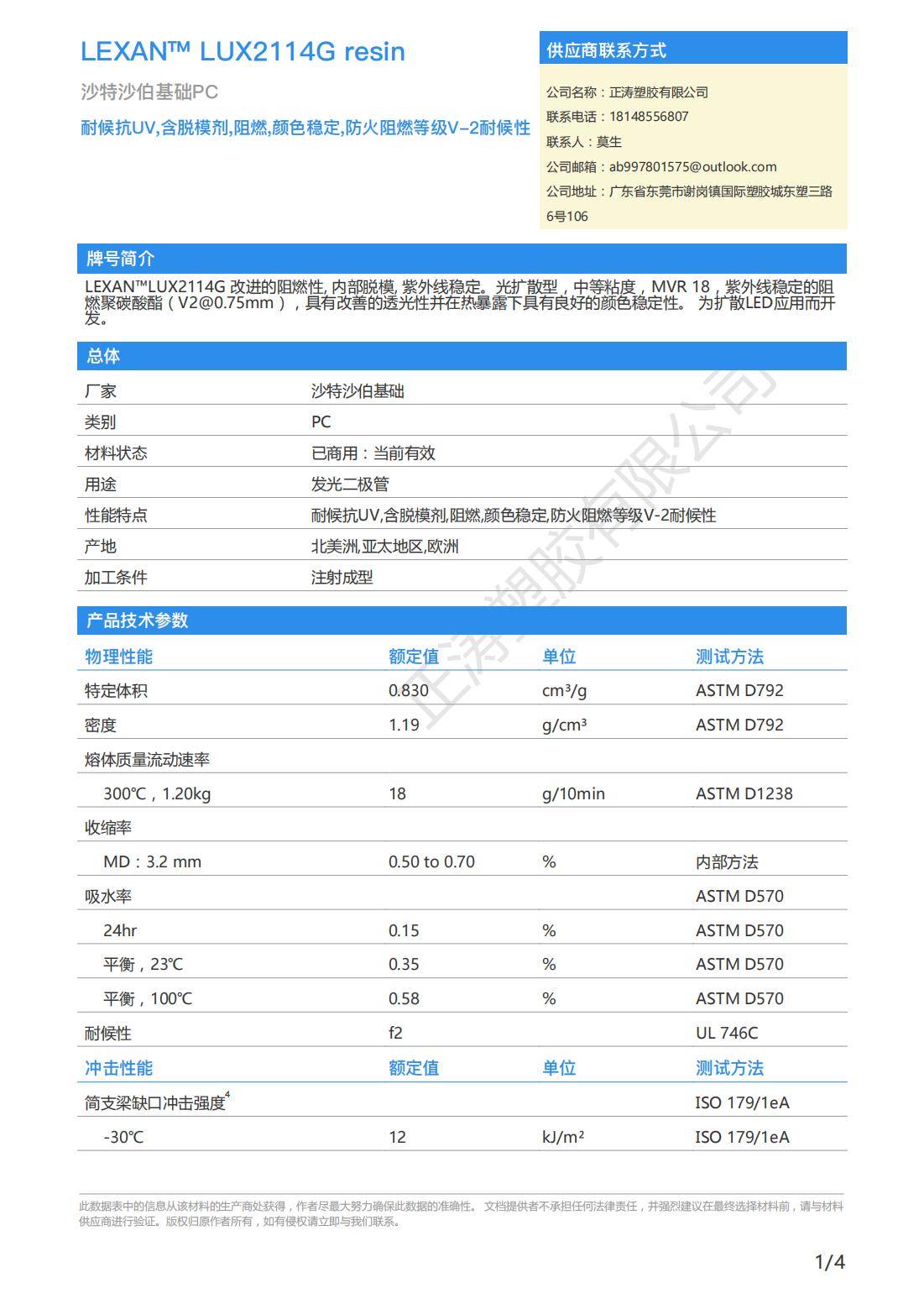 沙伯基础 PC LUX2114G 耐候抗UV 发光二极管 LED灯