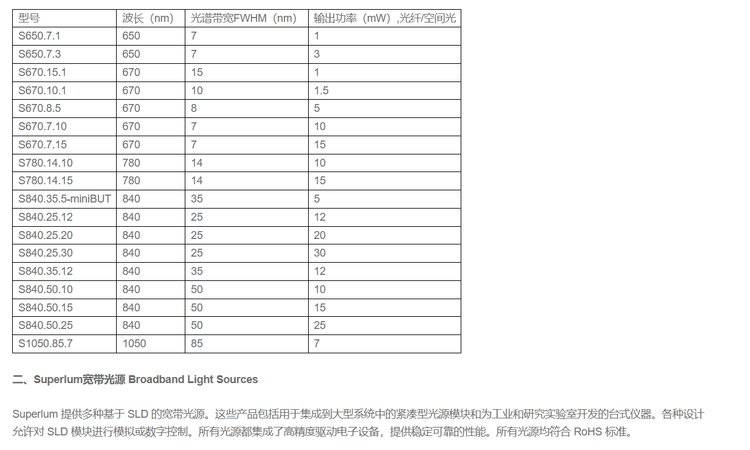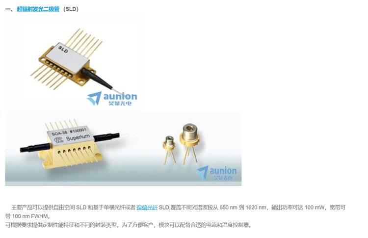 提供波长范围覆盖650-1620nm的超辐射发光二极管(SLED)光源、宽带光源和半导体光放大器