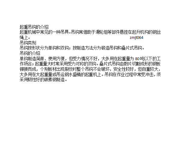 吊钩 操作简单使用方便 支持定制维护方便 发货及时