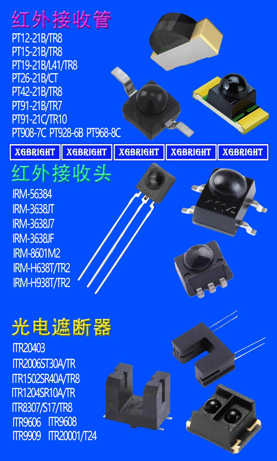芯光电子一站式供应全系列光电元件:发射管、接收管、接收头、贴片接收头、槽型光电开关、反射式光电开关、红外对管、光耦817、光敏管、贴片发射管、贴片接收管、侧射型红外发射管、侧向型红外接收管、0402/0603/0805/1206等贴片LED、照明2835灯珠等系列产品。