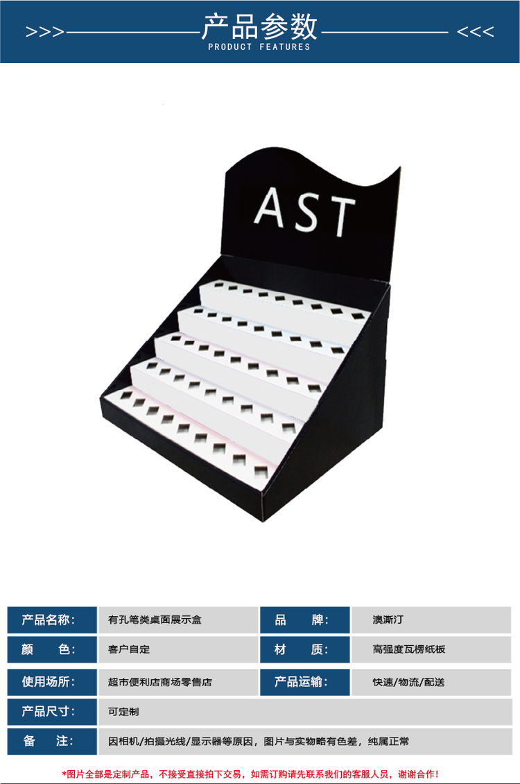 高强度蜂窝板纸定制 有孔笔类桌面小型展示盒