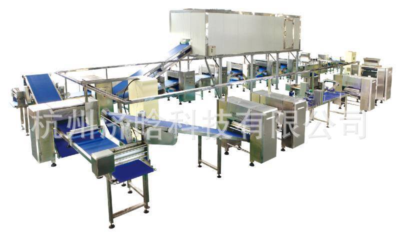 r采用技术,完成面块的输送、冷冻、擀薄、包油、叠层、整形、成型、入盘的全自动连续生产线,节省大量人力,了生产效率,提升产品的稳定性,是生产丹麦、开酥类产品的设备。