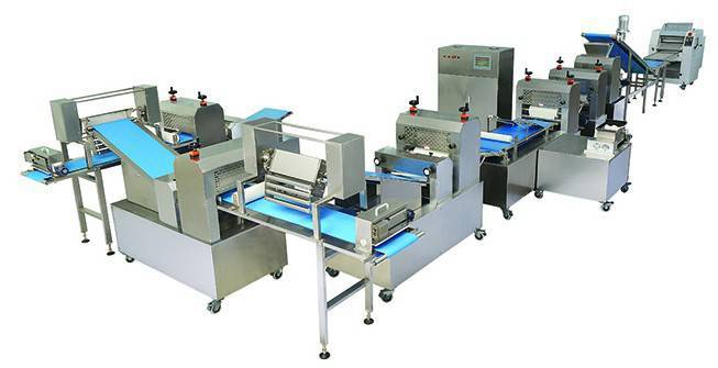 r该生产线采用组合式结构,可提供多元化配置生产夹馅面包、牛角/羊角、吐司等卷制式丹麦面包;改变配置也可生产薄饼、圈饼和糕饼等食品。全自动完成面皮整形、分条、切片、注浆、转向、搓卷、整型、输送及排盘。光、机、电、气一体化自动完成食品生料的成型,是大、中型有实力的烘焙食品企业自动化生产产品。