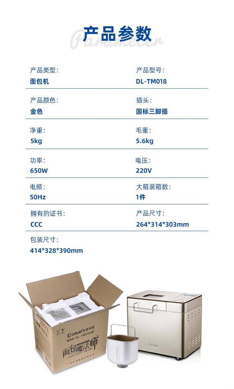 东菱DL-TM018面包机 家用全自动小型蛋糕和面发酵馒头多功能早餐机
