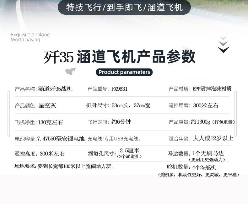 青少年四通道空翻涵道歼35战斗机中国舰载特技固定翼遥控飞机航模