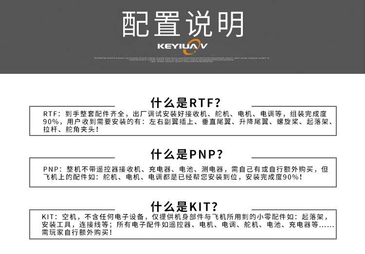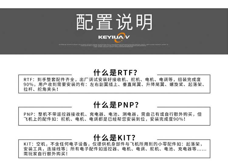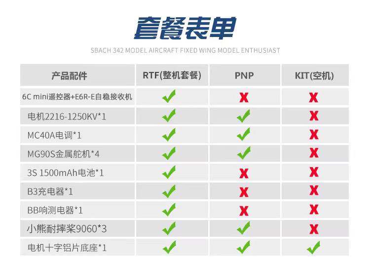 KIT(空机),PNP(电调T插),PNP(电调XT60插),RTF整