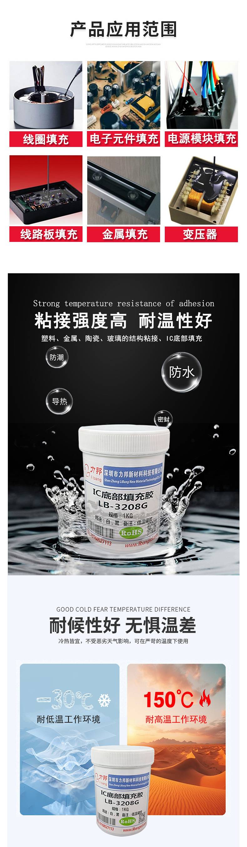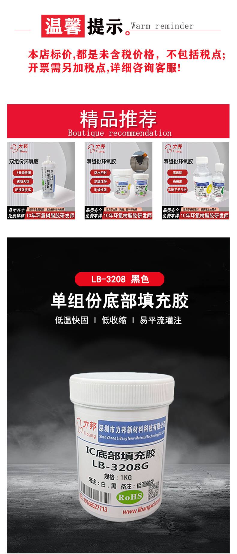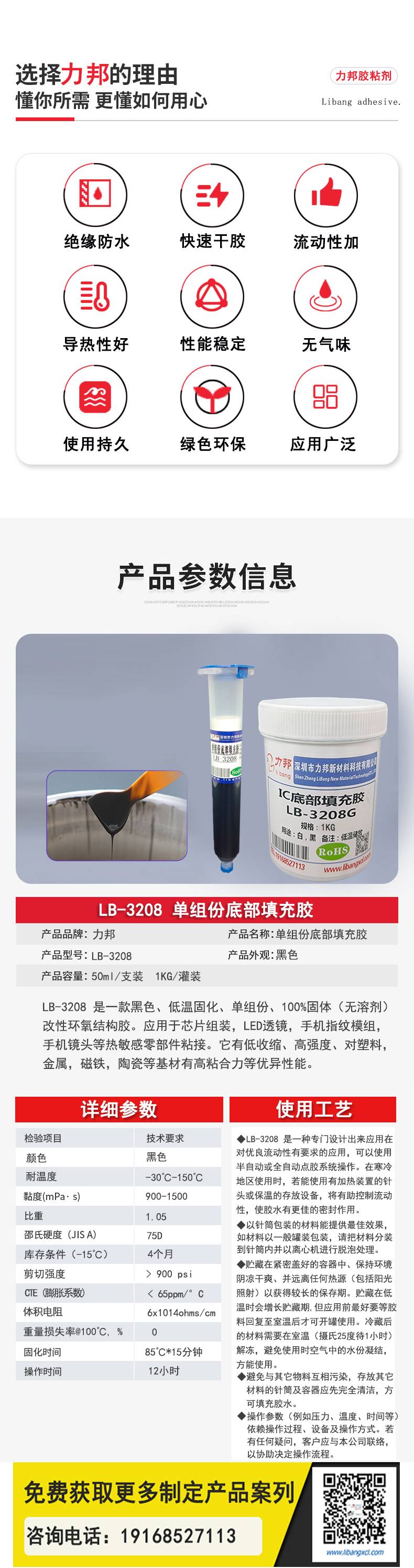 LB-3208 绑定ic胶 LED透镜芯片手机模组底部填充好易平流 力邦