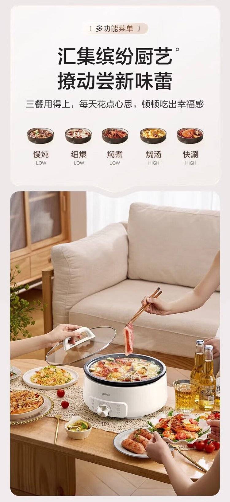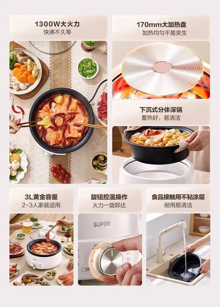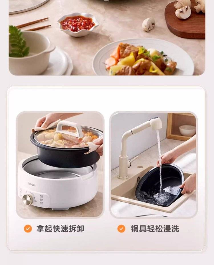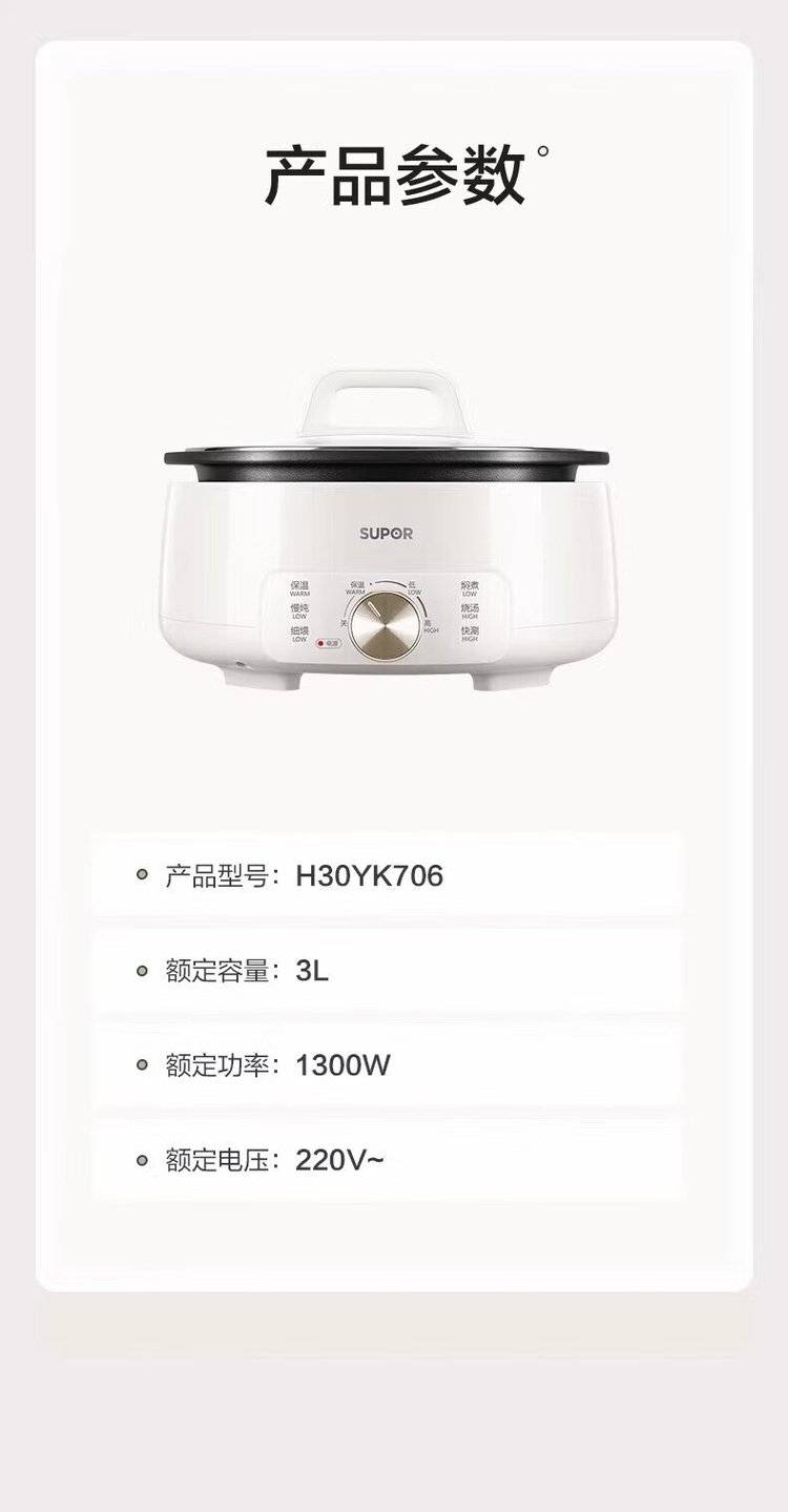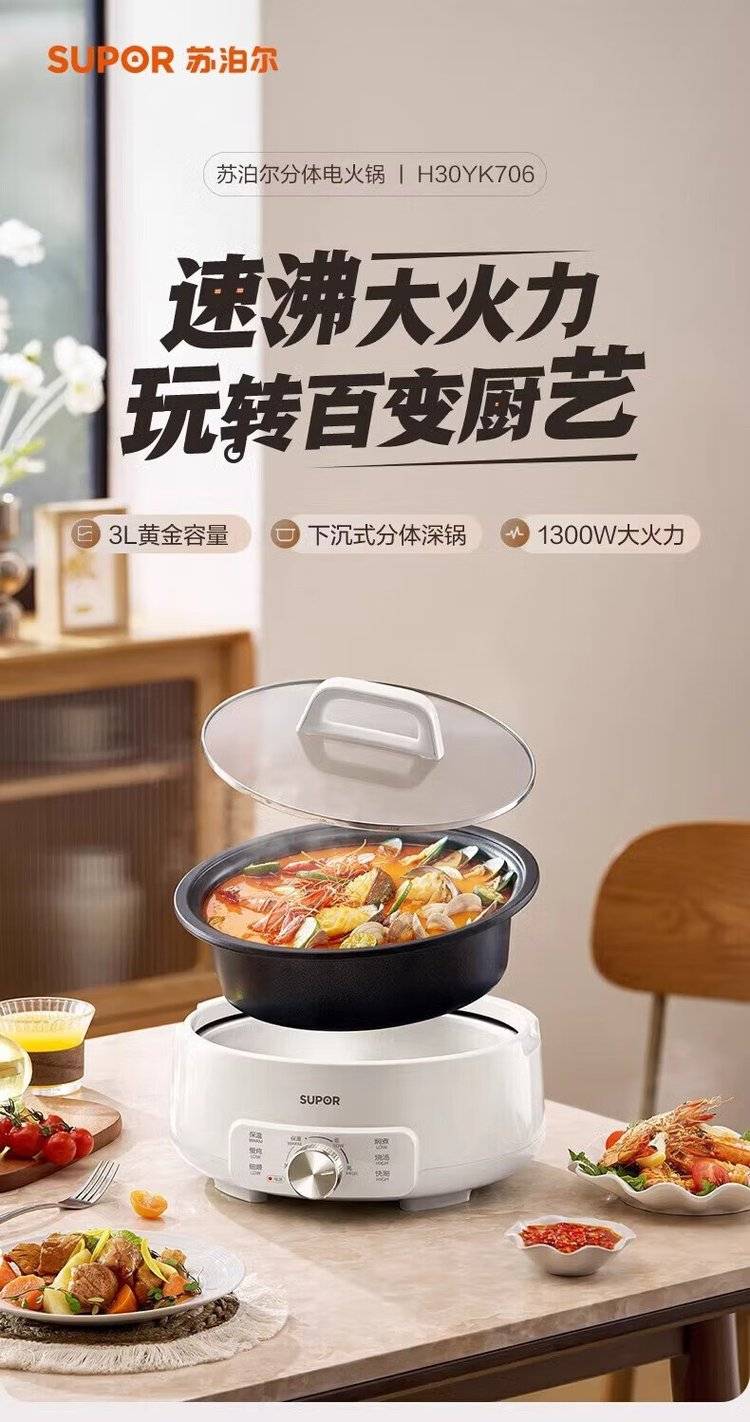 苏泊尔分体电火锅H30YK706 电煮锅 大容量多用途锅 多功能电热锅