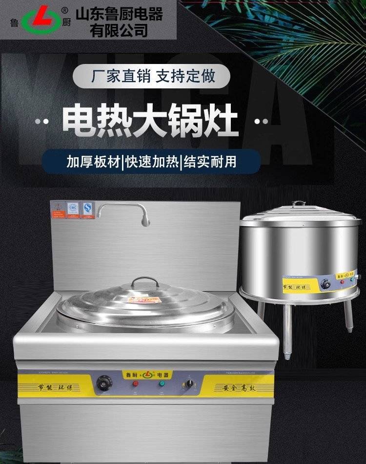 鲁厨商用不锈钢电热锅工厂食堂学校大容量炒菜锅猛火灶羊汤蒸煮锅