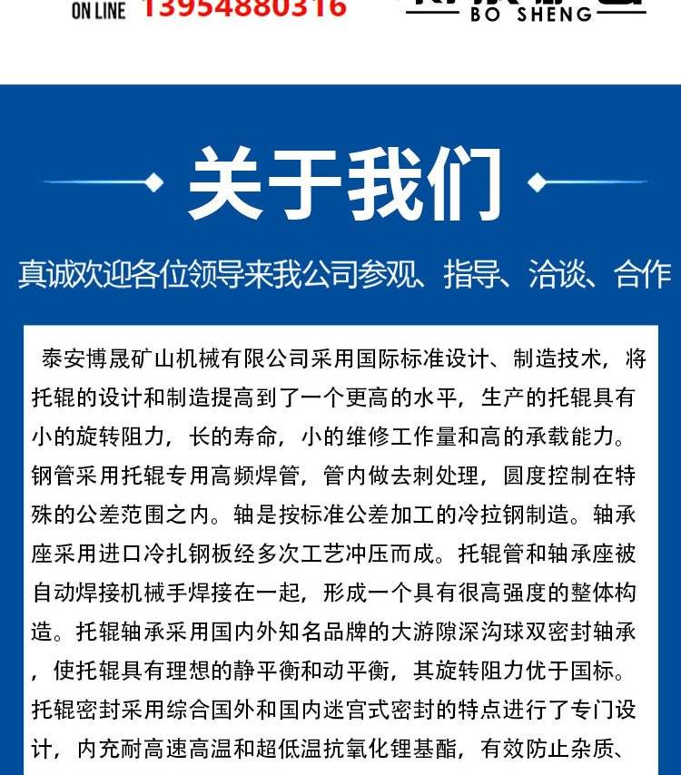 博晟矿山 规格多样 槽型托辊 超强的抗粘附能力 可降低物流成本