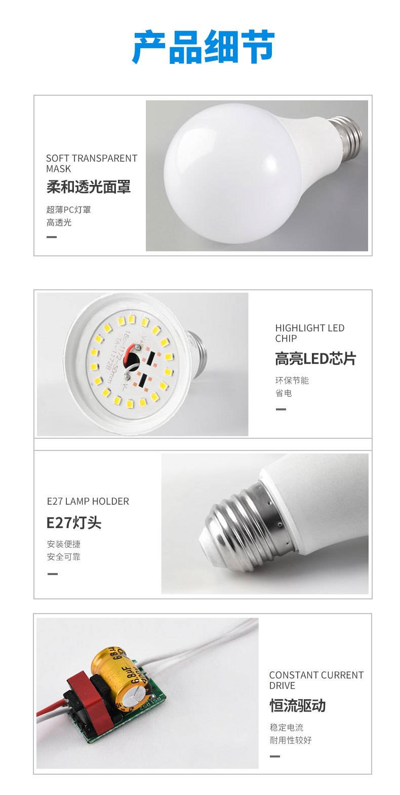 led球泡家用节能护眼灯泡e27螺口超亮光源3瓦5瓦7瓦白炽灯