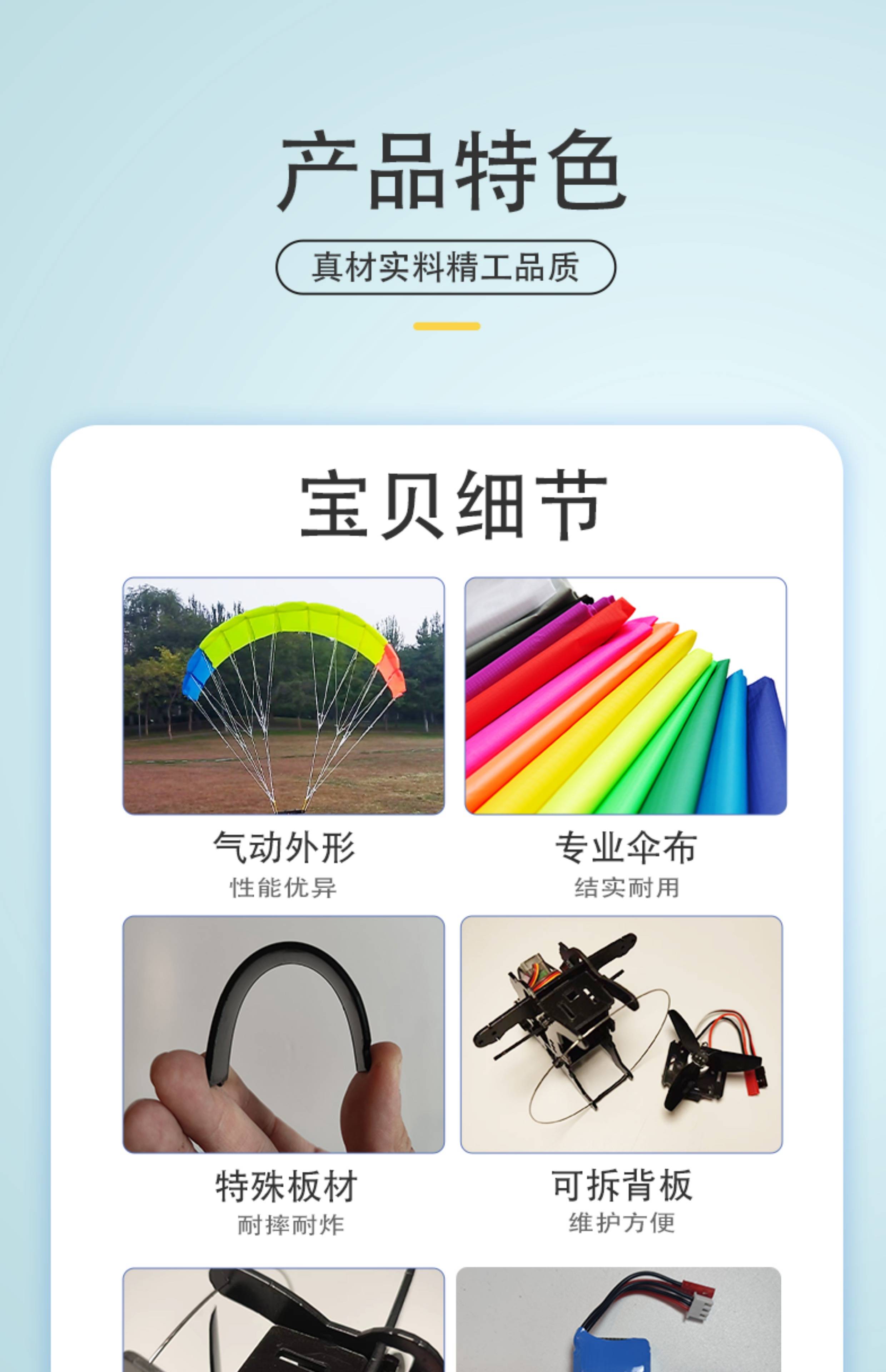 1米遥控动力滑翔伞无人机leaf1.0遛娃逗狗神器特技飞行伞亮模型