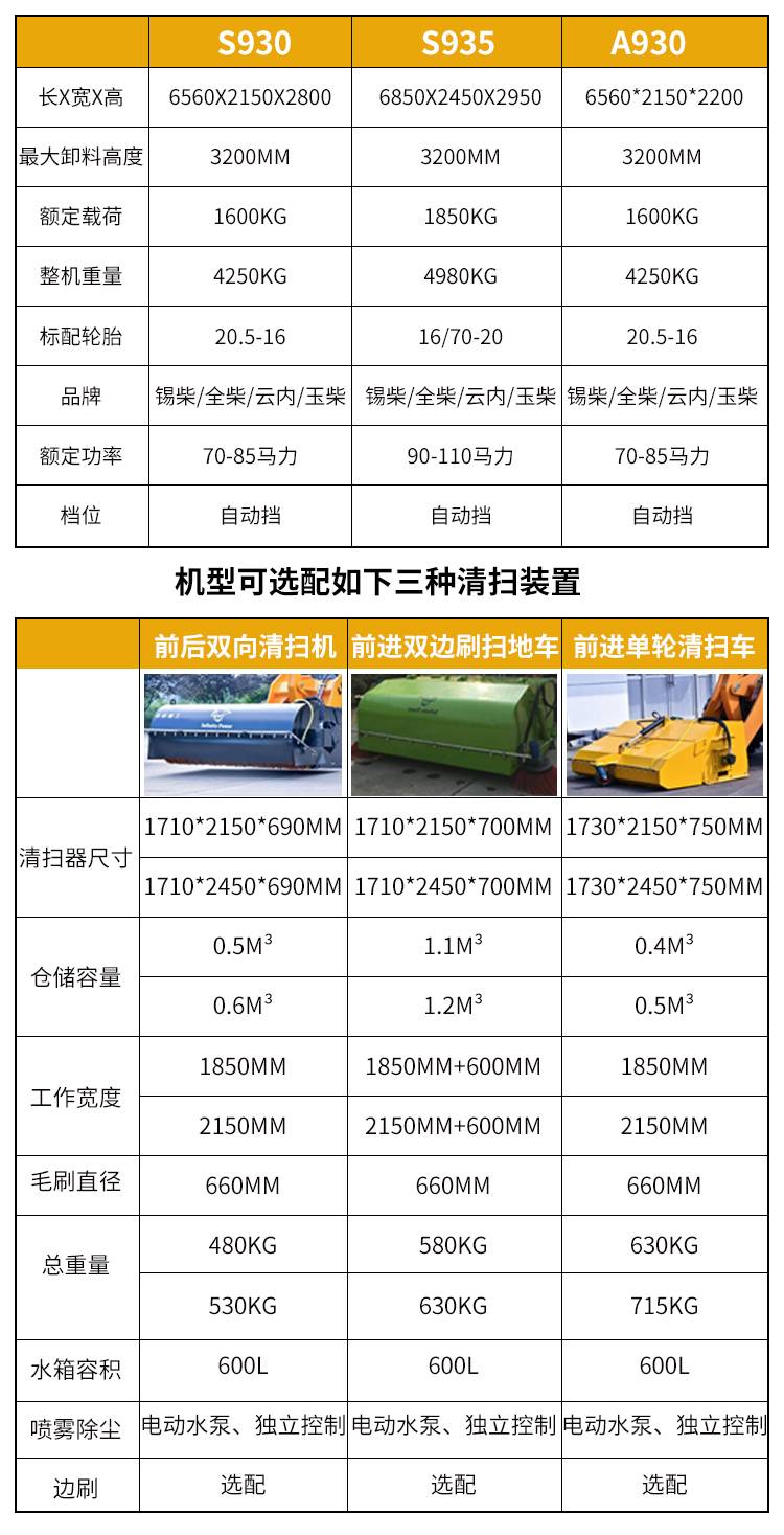 工地用清扫车 亚欧重工 S930装载机铲车清扫机