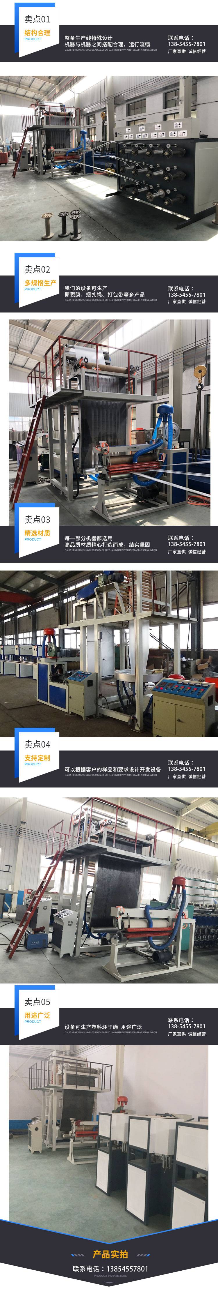 2222PP聚丙烯风冷撕裂膜机械捆扎绳打包绳坯子拉丝机组牌塑料拉丝机械