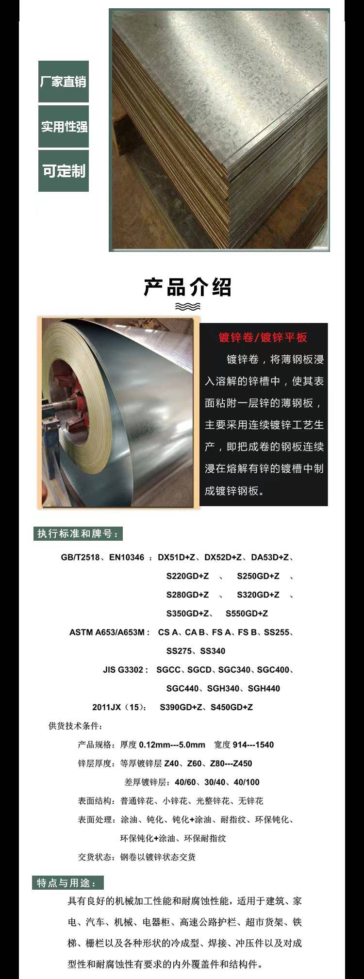 DX51D+Z镀锌卷板加工 建筑装饰及五金制品等 表面平整无缺陷 利涛